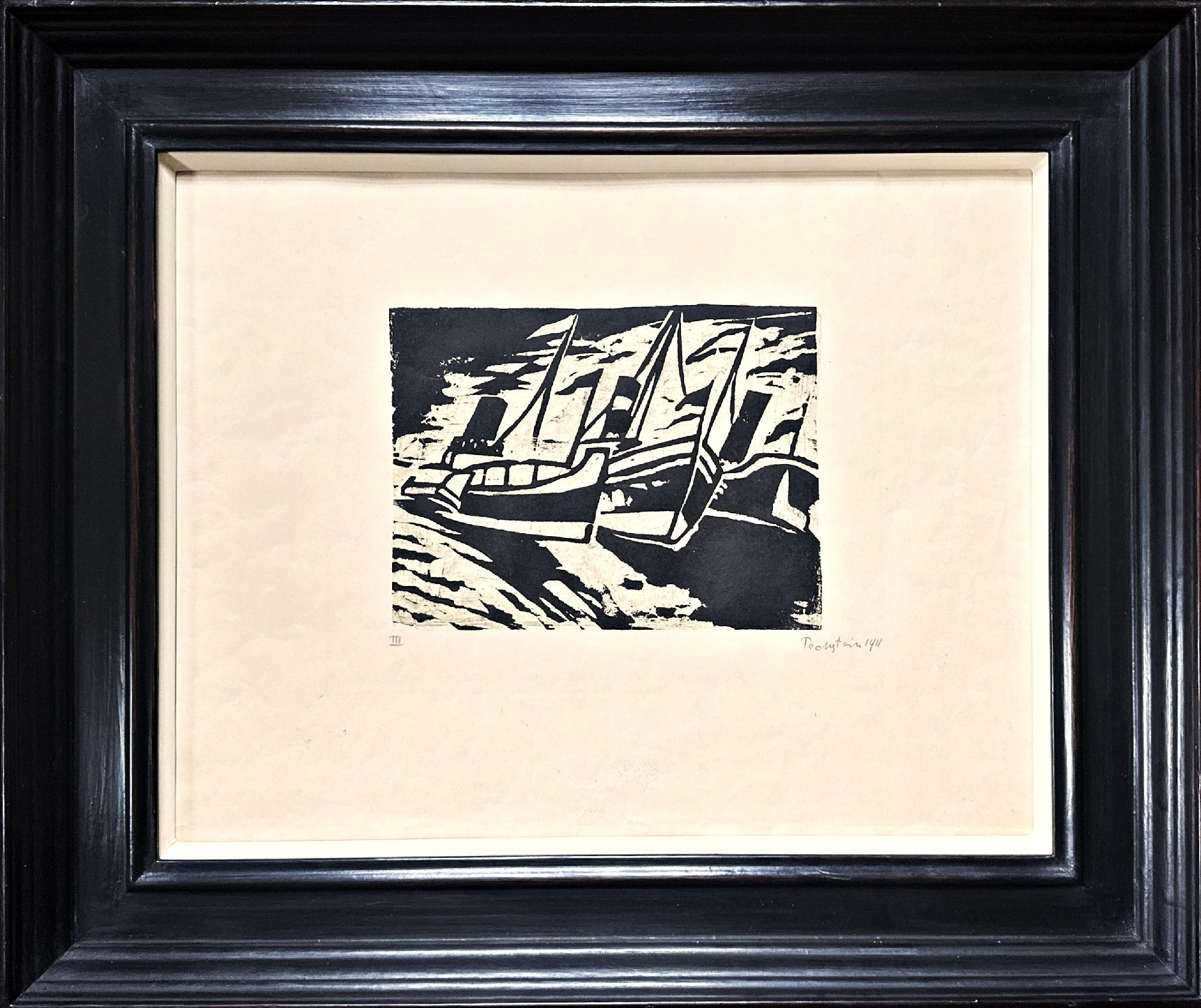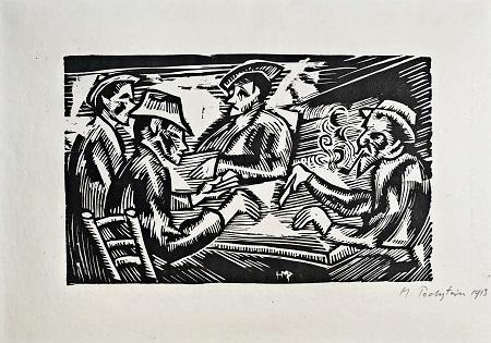 Farbholzschnitt über gelb-grünlicher Tondruckplatte auf Velin