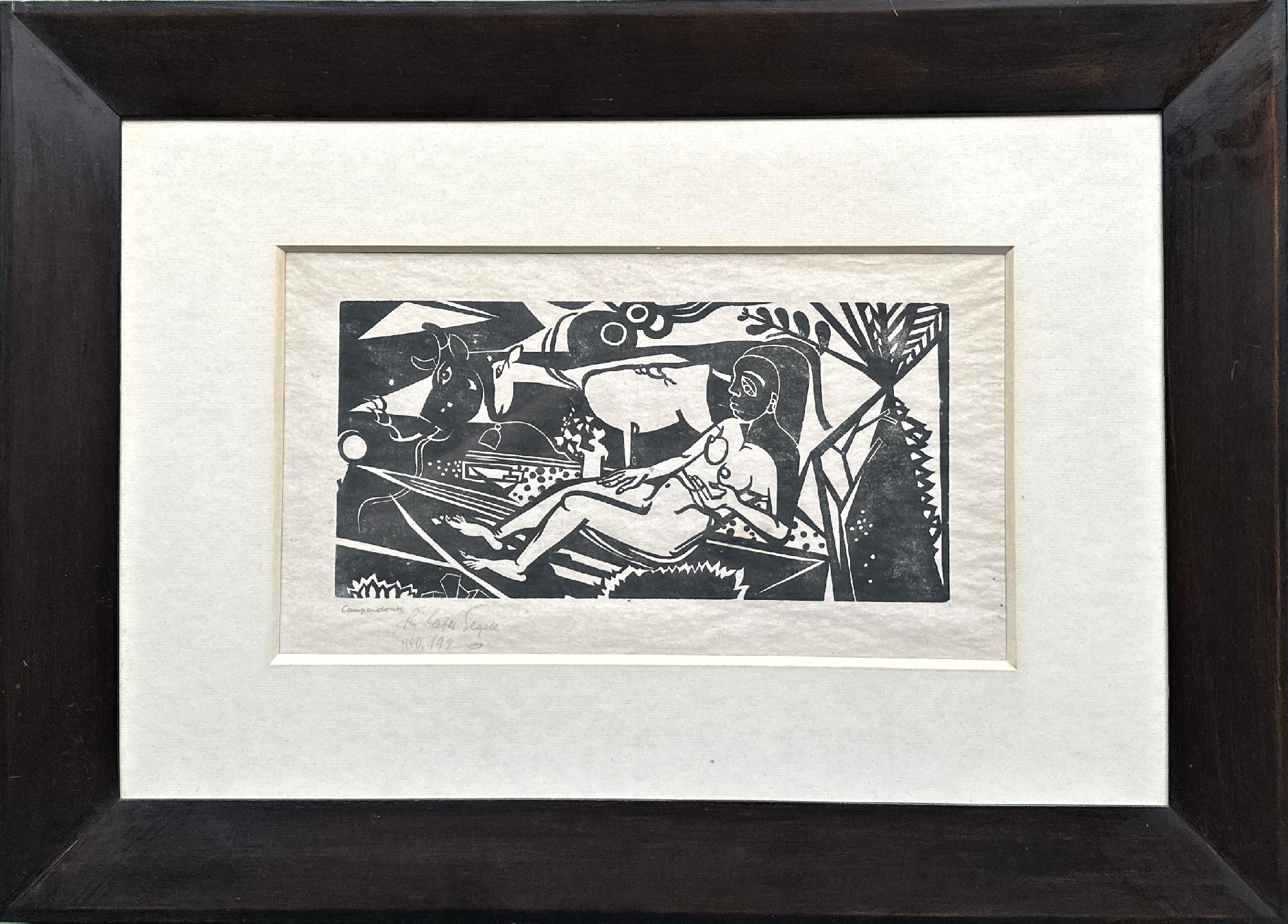 Liegender weiblicher Akt mit Kuh und Ziege, 1918