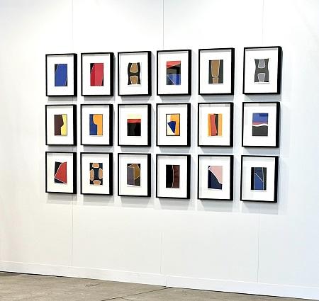Nun entstehen die Bilder der ersten Werkgruppe. Bei kaum einem Künstler lassen sich diese so klar voneinander abgrenzen wie bei Rolf Hans. Die „Fleckenbilder“- oder auch Tachistische Phase reicht bis zum Jahr 1965, dazwischen liegen die Übersiedlung mit seiner Familie nach Basel und die erste Ausstellung in der bekannten Schweizer Galerie Toni Brechbühl, die ihn bis in die 1990er Jahre hinein regelmäßig im Programm führen wird. Ernst Wilhelm Nay, ja vielleicht sogar ein bisschen Emil Nolde scheinen durch diese Bilder hin durchzuleuchten, die wie die Sekunde aussehen, in denen man die Kamera auf ein prächtiges Blumenfeld zoomt. Dass er sich nebenbei mit der japanischen Kalligrafie beschäftigt, ist vor allem seinen Pastell- und Tuschezeichnungen anzumerken.